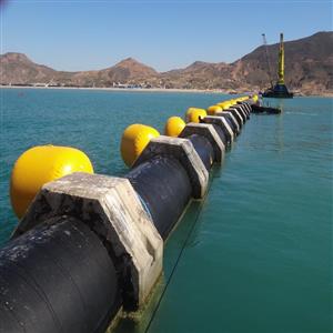 The Premier SPLB (Single Point Liftbag) is an enclosed air lift bag with an internal load bearing strop connecting the two stainless steel end fitting attachment rings. This allows for a high level of “off angle” lifting and load support, also gives a load “thru lift” capability that provides a swift and efficient solution for cable and pipe laying operations. Our Shore End Floats offer an economically priced solution where a lower specification Liftbag fulfils the requirement. |